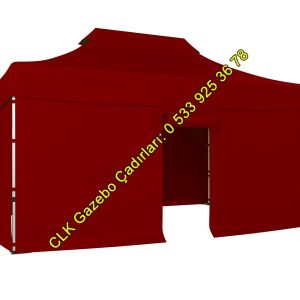 CLK 3×4,5 Katlanabilir Tente 3 Yan Kapalı Perdeli Gazebo Stand Çadırı Gazebo Makaslı Çardak