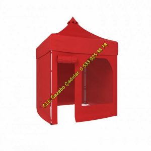 CLK 2×2 Metre Katlanabilir Gazebo Tente Portatif Çardak 3 Yan Kapalı 1 Yan Kapı ve Pencereli