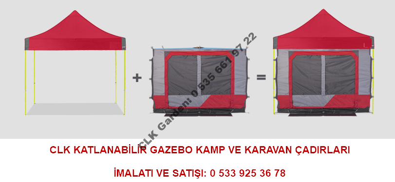CLK Markası gazebo katlanır kamp ve karavan çadırlarının imalatçı firmasıdır. Türkiye geneli kargo ile gönderimi sağlanan kamp çadırlarını en uygun fiyatlar ile toptan veya perakende olarak satın almak için bize 0 533 925 36 78 numaralı telefon ile ulaşabilirsiniz.